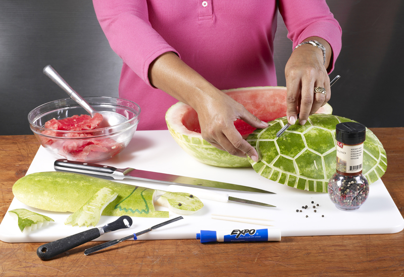 Carve this adorable watermelon turtle and not only does it make a great table decoration but also a creative fruit bowl. It easy to make following these instructions and is sure to impress friends at a party.