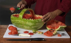 - Fill the basket with watermelon cubes.