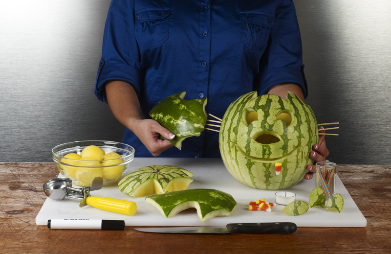 This watermelon Jack-O-Melon looks like the ideal decoration or centerpiece for a halloween party. Learn how to carve a watermelon into this spooky design.